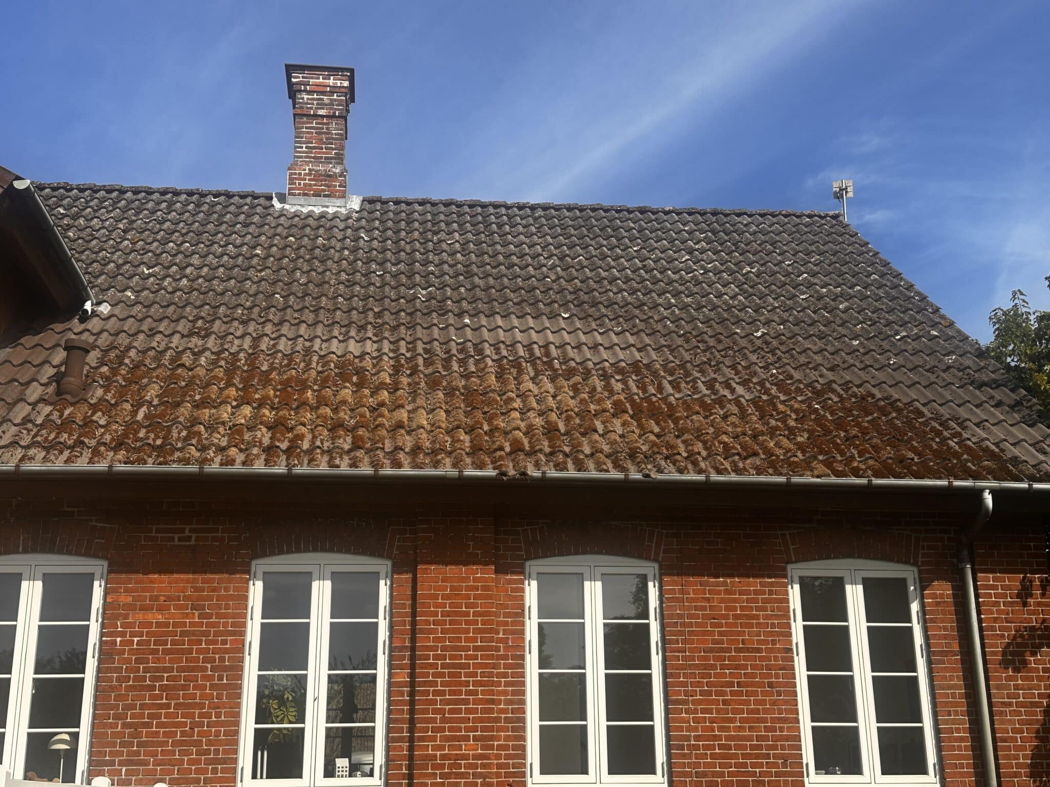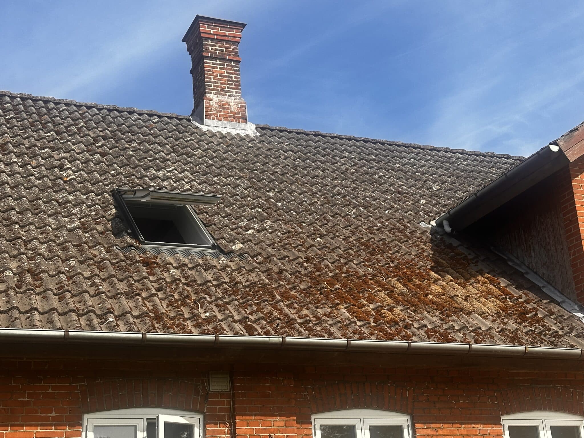 I Gelsted på Vestfyn har et flot, klassisk murstenshus fået nyt liv med en komplet rensning og maling af cementtegltaget.